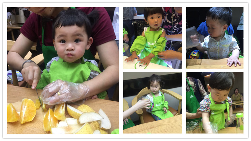 宝贝们都迫不及待自己动起手来榨果汁了